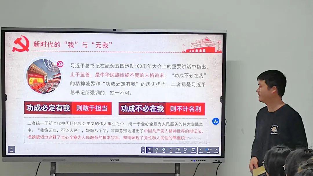 会上,李兴欢同志分别从传统文化的“我”与“无我”、革命文化和社会主义的“我”与“无我”、新时代的“我”与“无我”三个方面出发让全体党员认识到了“无我”的人格境界、“我”与“无我”的辩证关系,何为“我将无我,不负人民”。