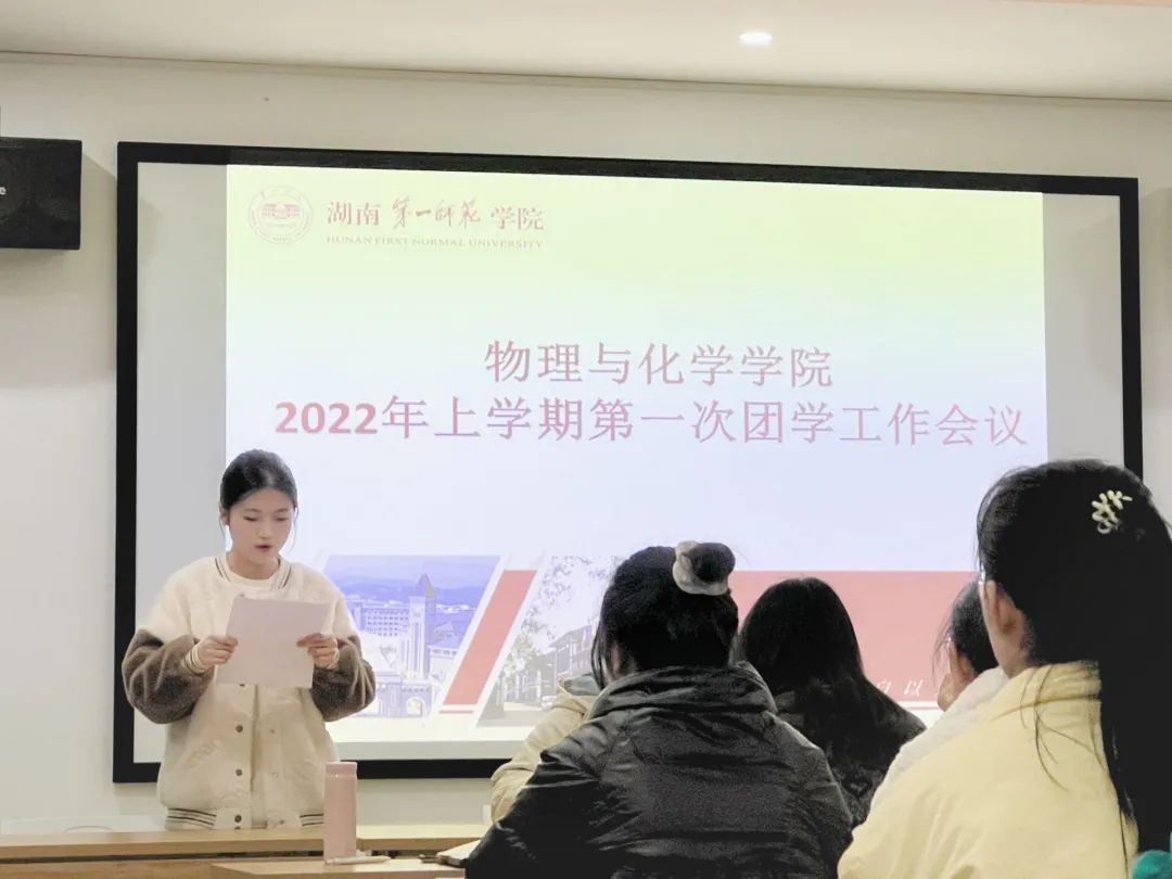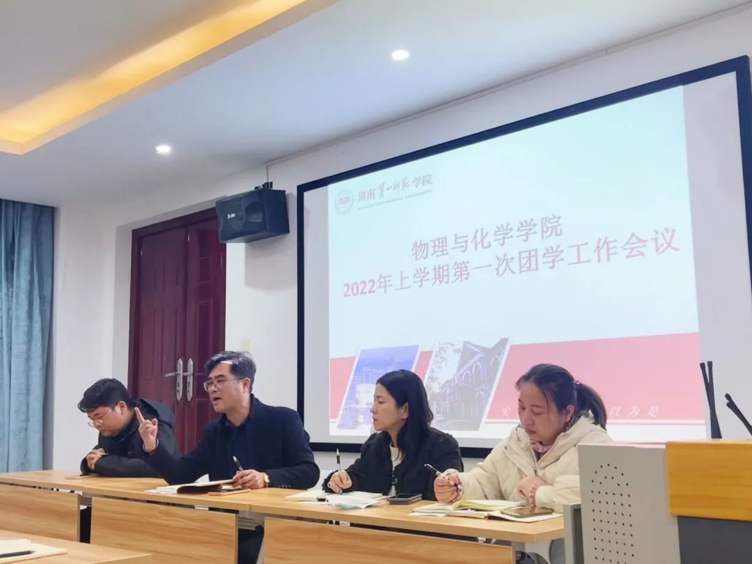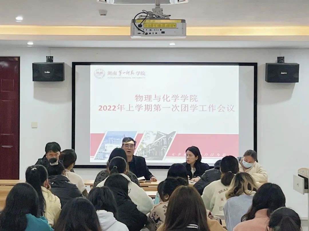 2月28日晚上6:30,十大体育网站在百熙楼414举行2022年上学期团学工作会议,出席本次会议的有物理与化学公司党委书记陈志武、学工办主任曾琳娜、团委书记石慧、辅导员老师廖弘宇及全体团学干部,会议由团委书记石慧老师主持。