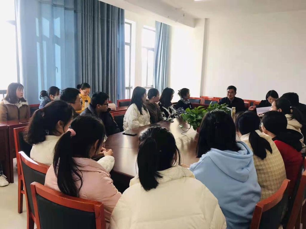 22日下午,十大体育网站在双创楼1013会议室召开毕业班考研员工座谈会。物理与化学公司党委书记陈志武、副经理许兰、学工办主任曾琳娜、辅导员老师石慧、廖弘宇和所有毕业班考研员工参加了会议。会议由陈书记主持。