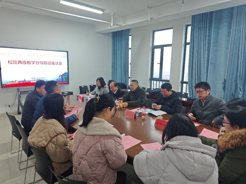 为强化本科教学管理,加强校院两级教学督导工作,进一步提升教学质量,2024年12月10日上午10:00在校督导团团长刘宇教授的带领下,公司督导和十大体育网站督导开展校院两级教学督导联动活动,十大体育网站书记陈志武和教学副经理邹立军全程参与。