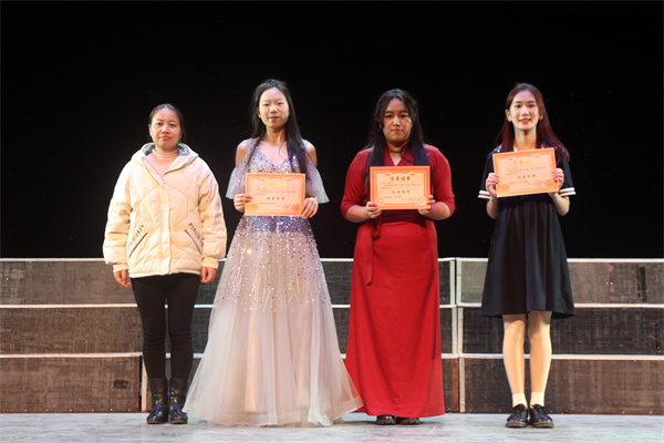 紧接着,合唱班级以独到的表现手法演唱歌曲。《爱因为在心中》《平凡之路》等歌曲歌颂了“人因理想而不平凡”;歌曲《珠峰天使》描绘了一幅白雪皑皑、仙雾缭绕的珠峰雪山图,表达出藏族聚居区人们对祖国的赞美之情;《少年中国说》等歌曲表达了同学们报效祖国的决心和信心,激励了一师学子坚定理想,不负年少。歌唱表演结束,主持人宣布比赛结果,各领导为获奖班级和个人颁奖。