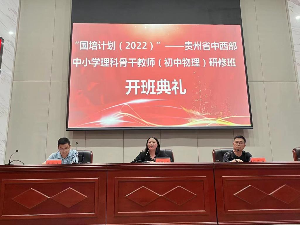 为认真贯彻落实《教育部、财政部关于实施中小学幼儿园教师国家级培训计划(2021-2025年)的通知》(教师函〔2021〕4号)和贵州省国培计划实施相关文件精神,由十大体育网站承接的贵州省“国培计划(2022)”—中小学理科骨干教师(初中物理)提升研修项目于2022年8月10日在百熙楼228顺利开班,贵州省中小学理科骨干教师(初中物理)国培一班、二班、三班的全体班主任、教学秘书及全体学员参加了开班典礼。