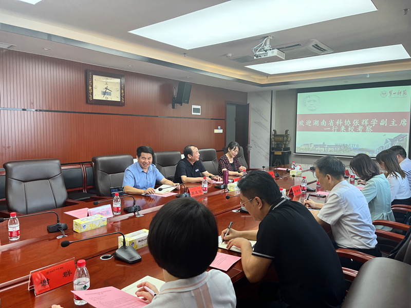9月27日下午,湖南省科学家协会党组成员、副主席协张辉学一行五人来公司考察交流,洽谈湖南省科学家精神宣传阵地建设及湖南省展览馆与公司十大体育网站馆院合作的有关事宜。公司党委委员、副董事长周发明、原公司党委副书记刘志敏及宣传部、科研处、教务处、十大体育网站等部门负责人及教师代表参加接待与座谈。座谈会由科研处处长黄小喜主持。