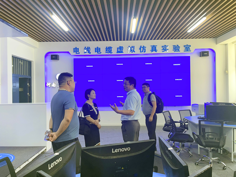 电缆工程专业是培养具有电线电缆产品研发、结构设计、生产制造、质量控制以及企业管理工作所需的基本理论和工程素养的应用型人才。考察组围绕电缆工程专业的人才培养定位,专业课程设置,专业实验室建设以及员工实习实训工作进行了的交流,重点就专业的特色课程设置、专业教学实验室建设、就业情况进行了深入探讨。会后,考察组一行参观了智慧教学中心、机械与电气工程中心、河南省线缆结构与材料重点实验室。