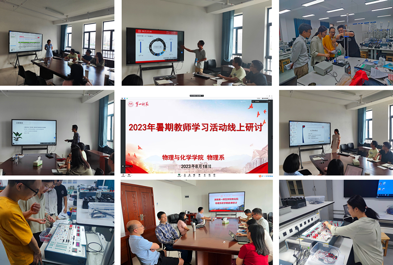 为了进一步提升教师的课堂教学水平,全面提高公司人才培养质量,促进教学质量和教学水平的不断提高,物理系在暑期和开学准备周积极开展了一系列备课磨课活动。备课分为三个阶段。首先,全系教师自主备课并修改制定教学大纲。接着,教学导师对新进博士进行一对一备课磨课指导。最后,由大学物理、课程与教学论、大学物理实验课程团队分别进行线下磨课。