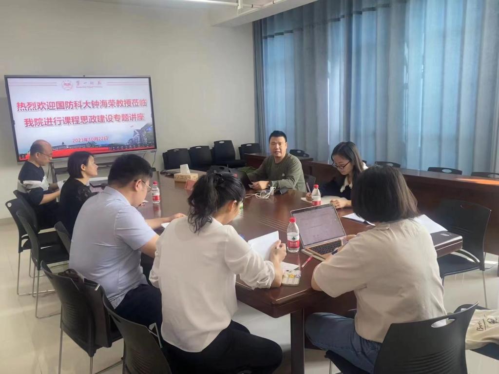 2023年10月22日,十大体育网站邀请国防科技大学钟海荣教授作“课程思政建设”专题讲座。讲座由许兰经理主持,公司大学物理课程团队全体成员和部分教师代表聆听了讲座。