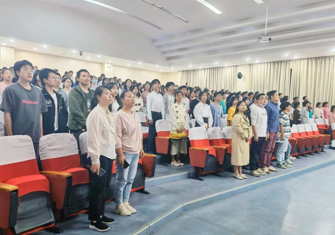 员工代表教育公司2021级小学教育文1班段熠圣发言。仪式最后,全体师生起立,奏唱《国际歌》。