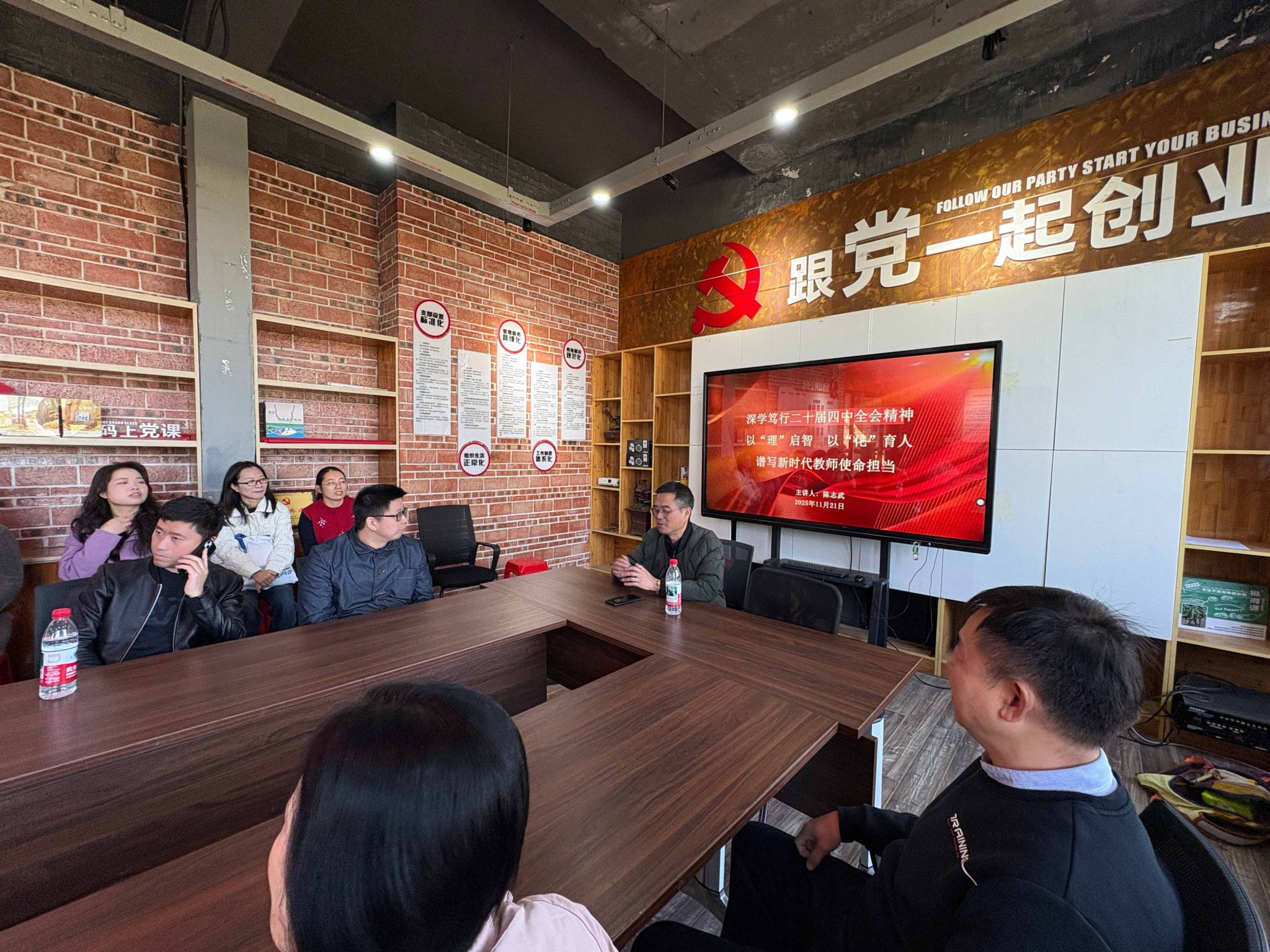在“深学笃行党的二十届四中全会精神,以‘理’启智、以‘化’育人,谱写新时代教师使命担当”专题党课中,陈志武书记深入解析了党的二十届四中全会中重要精神,并对标公司“一四”发展战略和“两坚持两拓展”发展思路,结合公司工作实际将教育强国、科技自立自强等重大部署融入日常教学科研和社会服务之中。他强调,作为新时代高校教师党员,要立足师范教育本色和理学专业特色,在落实立德树人根本任务中彰显责任担当。