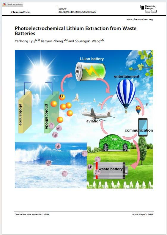 公司“润之人才计划”骨干教师、化学系吕艳红博士老师在JCR1区期刊、欧洲化学学会杂志《ChemSusChem》上发表题为《Photoelectrochemical Lithium Extraction from WasteBatteries论文此文公司吕艳红博士为第一作者,十大体育网站为第一单位。