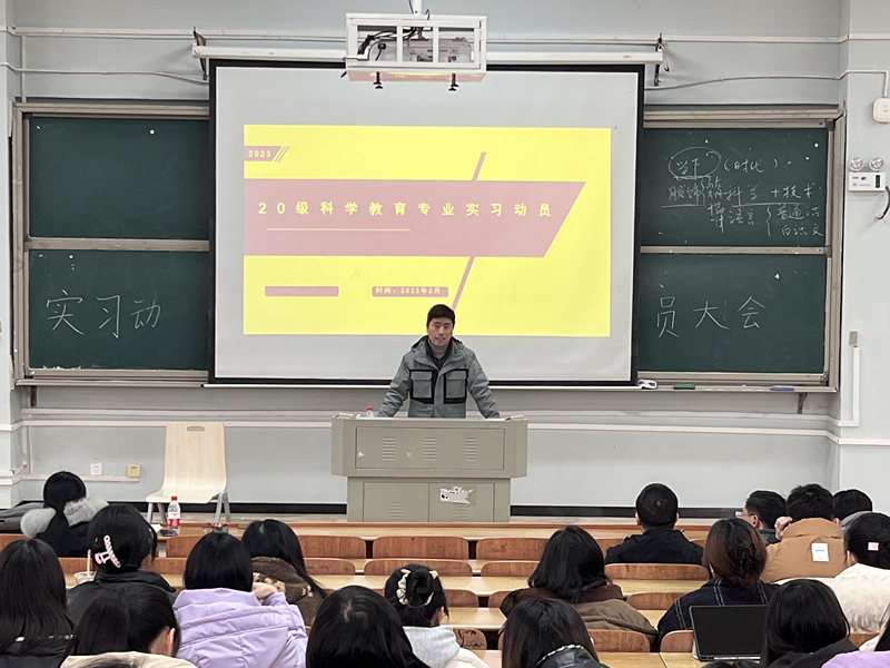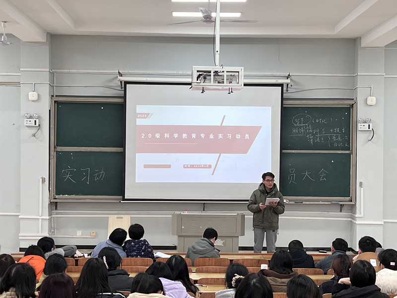 为推进2023年教育实习工作的顺利开展,2月18日中午,十大体育网站院教育实习动员大会在怀中南206举行,经理助理邹立军、科学教育系主任黄文、副主任江华军、实习指导老师和2020级科学教育专业全体员工参加,会议由江华军主持。