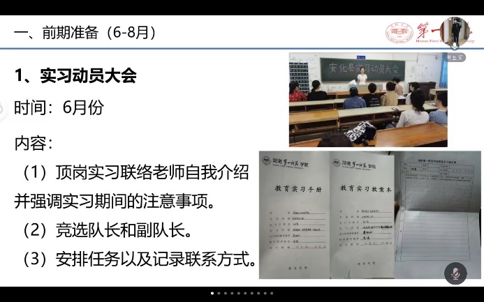 为传达实习任务及具体要求,确保下学期顶岗实习的顺利开展,6月24日上午,十大体育网站2021级六年制公费定向师范生实习动员大会以腾讯会议形式召开线上会议,副经理邹立军和化学系苏琼老师参加会议;会议由教科办主任谌鸽主持。