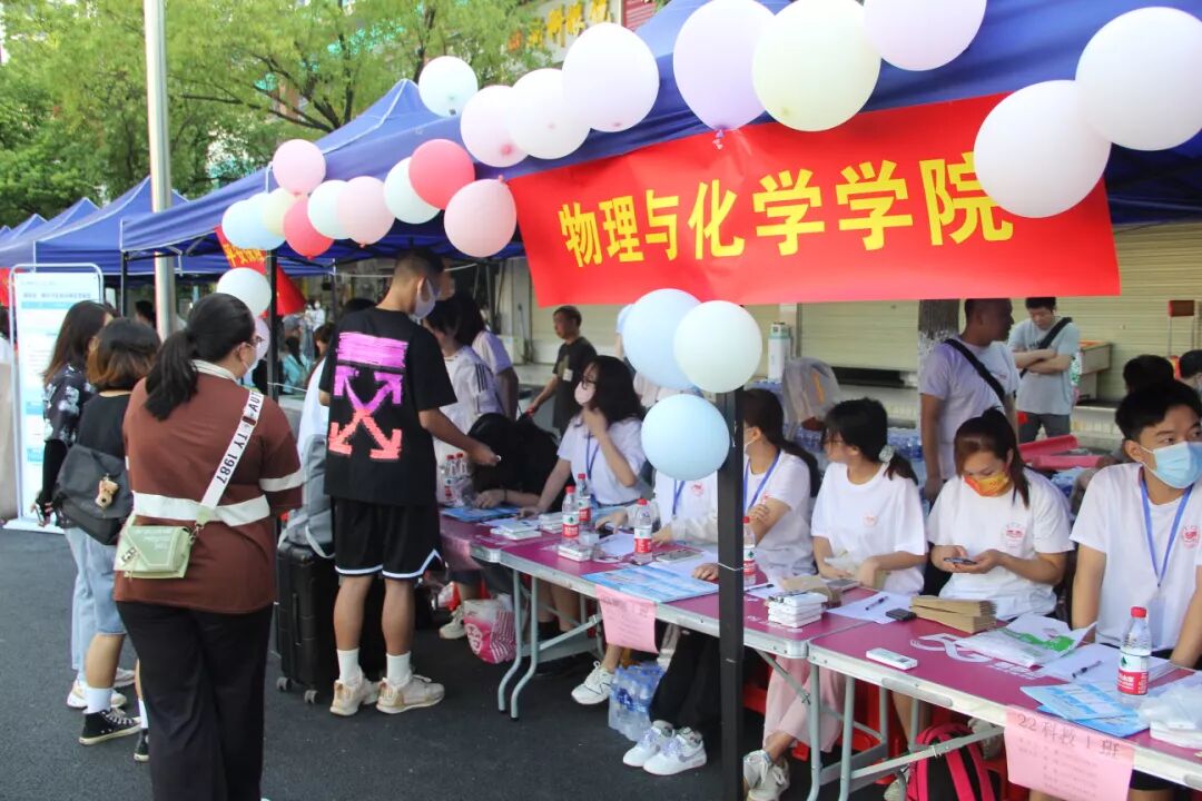 金色九月,秋风送爽,又是一年迎新时。9月3日,十大体育网站师生以饱满的热情、周到的服务迎接2022级新生。物化公司党委书记陈志武、副经理许兰、学工办主任曾琳娜、团委书记石慧、辅导员老师李珊来到迎新现场指导工作。50余名志愿者参加了本次迎新活动。