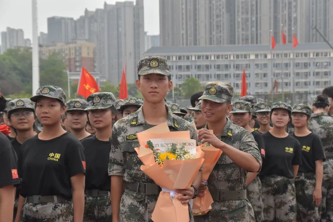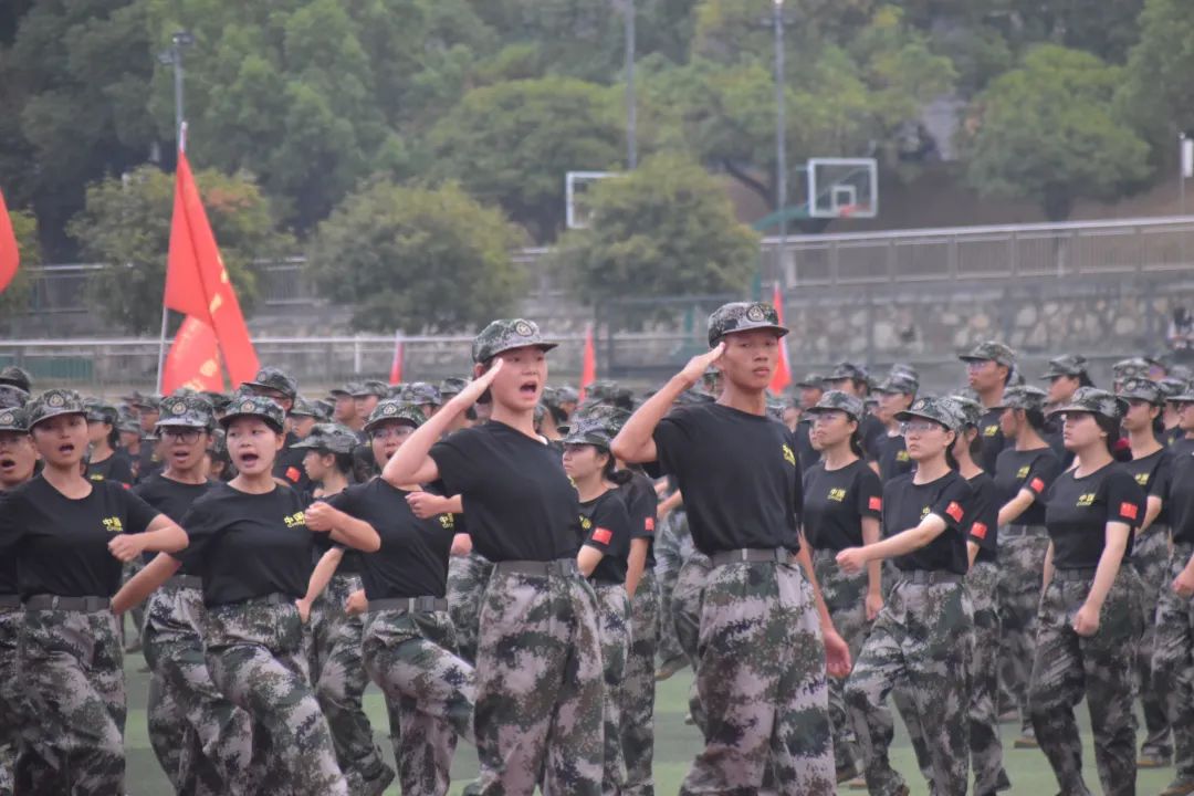 五星闪耀,皆为信仰,在庄严肃穆的升旗仪式中,2022级新生军训汇报表演正式拉开帷幕。公司学子以饱满的热情,整肃的军容,坚定的步履接受检阅。走分列式时,他们步伐整齐、口号嘹亮,尽显青春之激昂;摆特色方阵时,他们拳拳有力、步步生风,用行动践行“请党放心,强国有我”的坚定信念;彩旗挥舞时,目光所至,皆为华夏,他们以一颗热血之心献礼新中国成立73周年。至此,军训成果展示到此完毕。