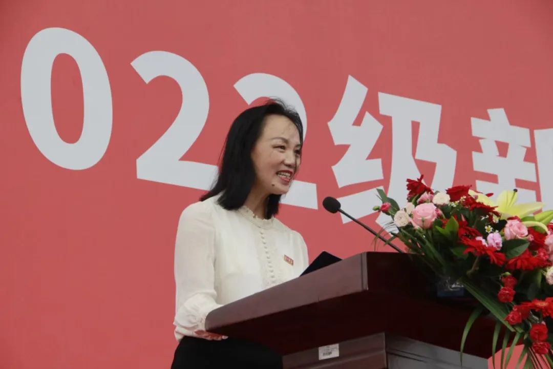 董事长童小娇教授代表全校师生员工对全体2022级新生的到来表示热烈欢迎。童董事长指出,一师素有“千年学府,百年师范”的美誉,一师历史厚重又极富活力,同时向全体2022级新生提出三点要求:一是以德为首,以智为梯。希望广大同学把握奋斗方向,恪守内心道德,立志做大事,立大志、明大德、成大才,在最美的年华向阳而生。二是知行合一,勇于创新。童董事长激励同学们遇到挑战迎难而上,变被动为主动,要孜孜不倦,终身学习,掌握真才实学,练就过硬本领。三是为国为民,担当使命。童董事长向新一代学子寄予厚望,勉励同学们将小我融入大我,与时代同步伐,与人民同命运。谨记校训校风,做有为青年,谱写新时代青春之歌。