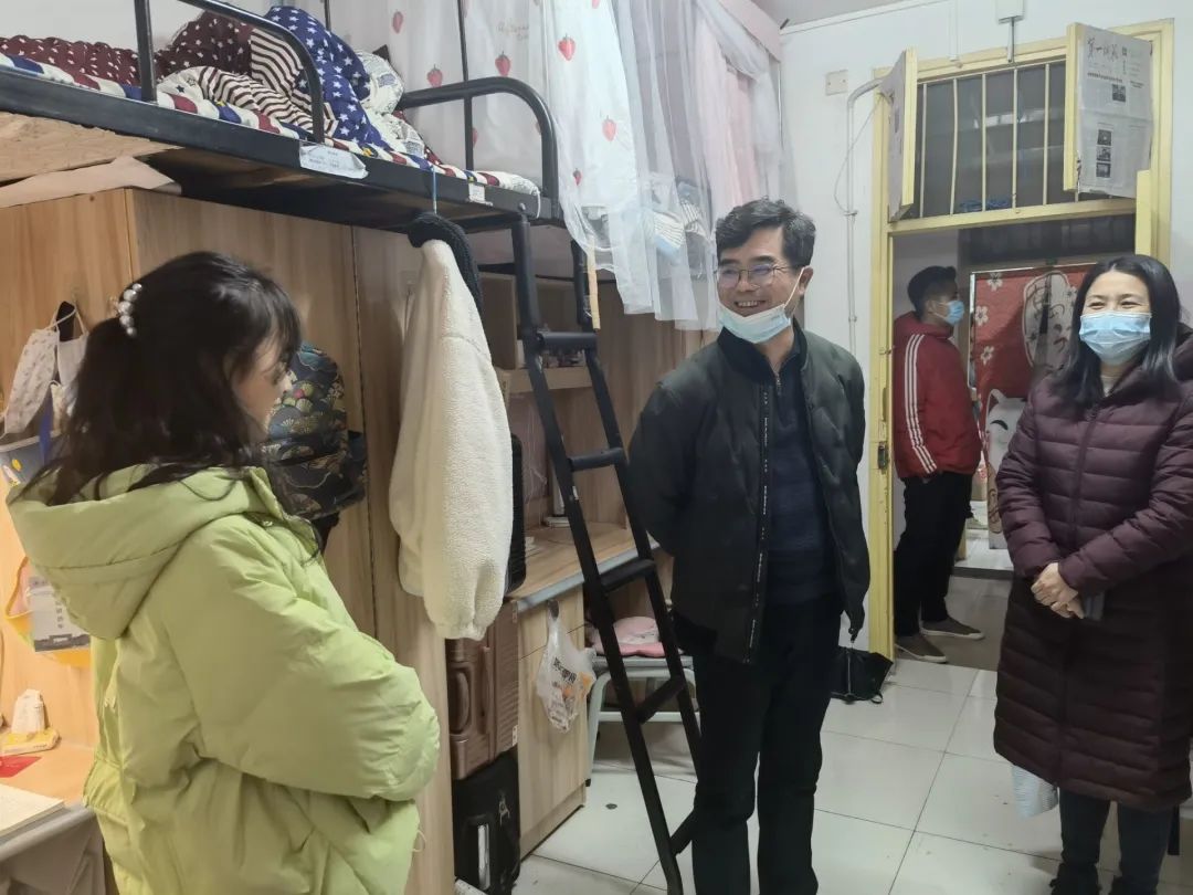 来到低楼层寝室,陈书记针对春季常见的蚊虫、细菌滋生等现象,提醒同学们做好个人卫生,及时清理寝室杂物和定期消毒,既可以营造干净整洁的寝室环境,也可以增强集体免疫力。在与同学们的交谈中,老师们建议同学们学习之余也要坚持运动、培养兴趣、丰富生活、劳逸结合、调适身心,以实现全面发展!