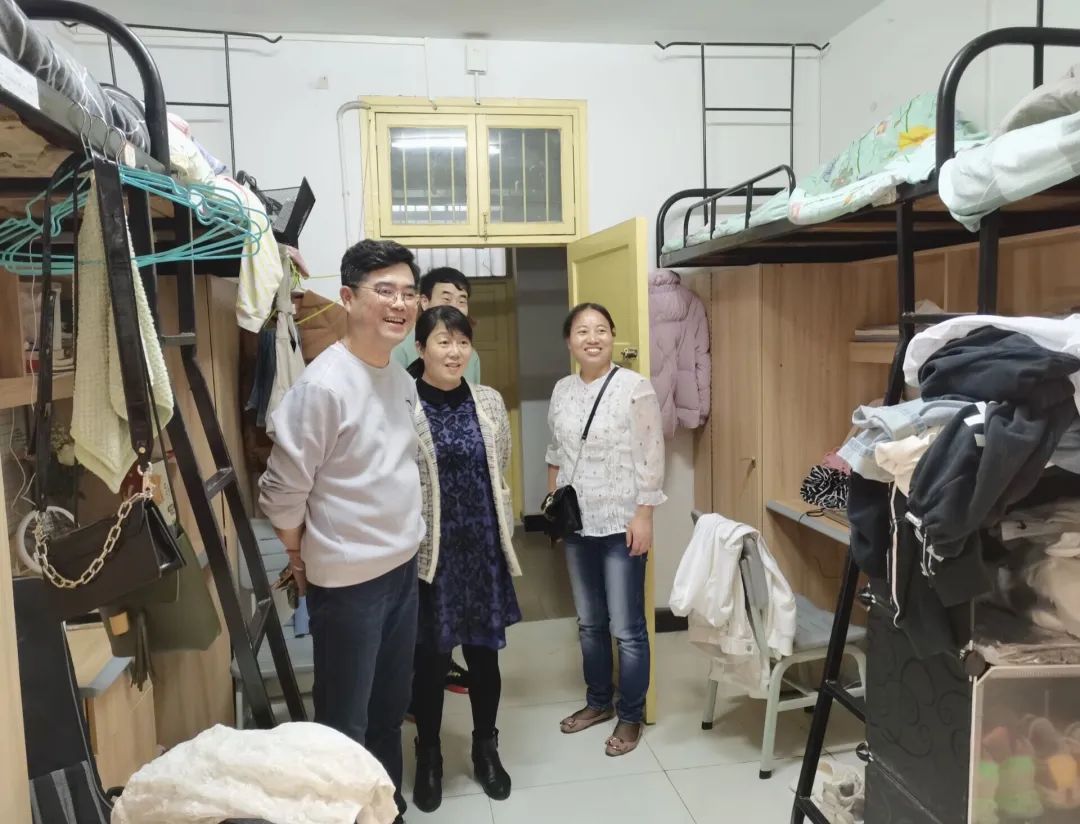 为进一步推进“六进公寓“建设,打造示范寝室,2022年3月14日晚7:00,公司党委书记罗成翼、物理与化学公司党委书记陈志武、公司学工部副部长欧阳伶俐、物化院学工办主任曾琳娜、团委书记石慧以及辅导员老师廖弘宇、赵锋锋和物化院宿保部志愿者对员工寝室卫生进行全面检查。
